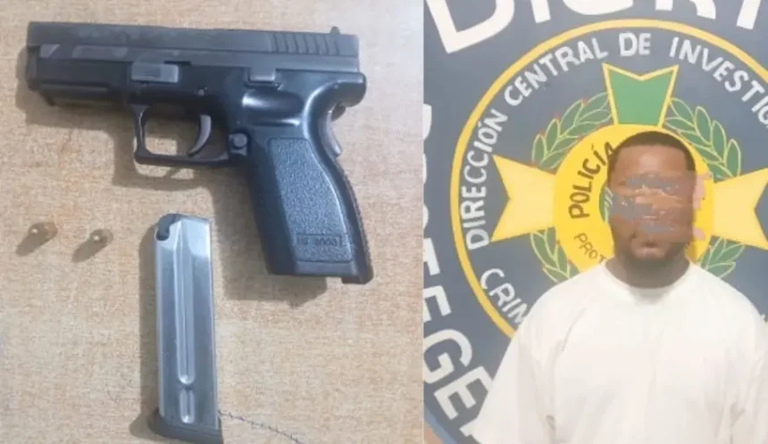 Miguel Gómez, de 25 años y residente en el distrito municipal de Fondo Negro, municipio Vicente Noble, provincia Barahona, fue detenido por agentes preventivos de la Dirección Regional Sur de la Policía. Durante el arresto,…