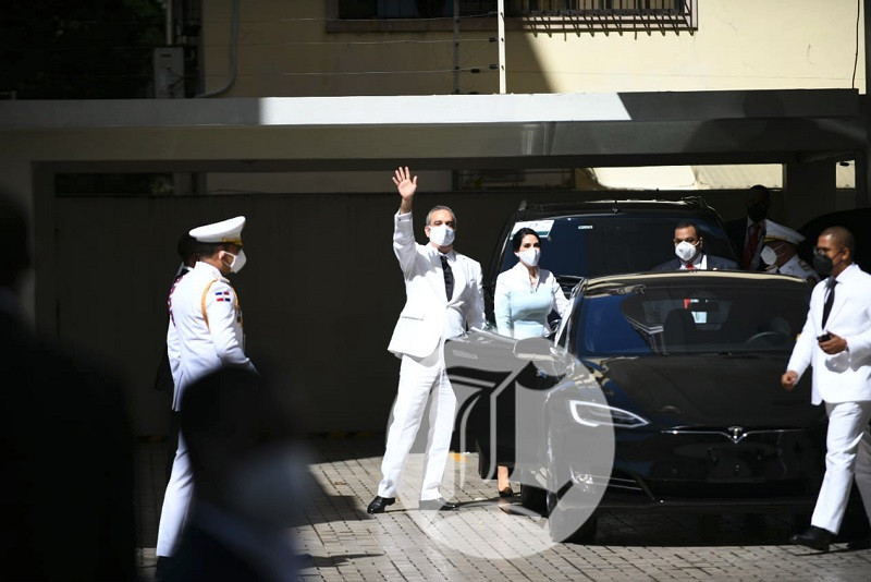 El presidente Luis Abinader, en 2020, llegó al Congreso Nacional en un automóvil eléctrico marca Tesla, modelo S, color negro.