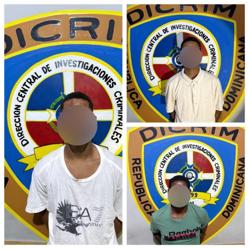 Los detenidos son Kelvin Díaz Castillo, de 19 años, su hermano Ángel Luis Díaz Castillo, de 22, y su primo Julio Alberto Díaz Castillo, de 18, todos residentes en el sector Don Bosco, quienes fueron arrestados en las inmediaciones del hecho tras un incidente que se produjo luego de que la patrulla retuviera una motocicleta en la que estos se desplazaban de manera irregular.