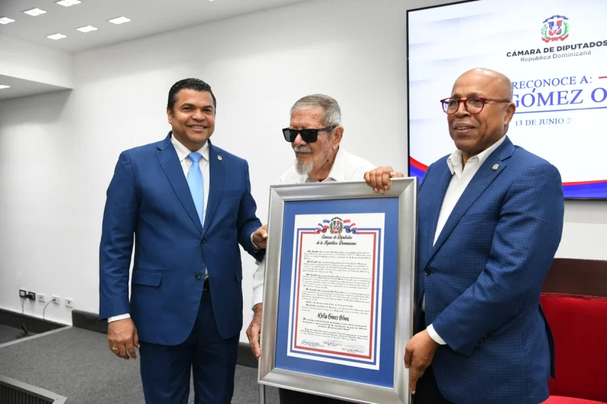 SANTO DOMINGO. – La Cámara de Diputados entregó un pergamino de reconocimiento como homenaje al héroe nacional y comandante Delio Gómez Ochoa, sobreviviente de las expediciones de junio de 1959, por Constanza, Maimón y Estero Hondo. El acto de reconocimiento estuvo encabezado por el presidente de la Cámara de Diputados, Alfredo Pacheco, quien destacó el papel heroico desarrollado por el comandante Gómez Ochoa a favor de la lucha contra la tiranía trujillista.