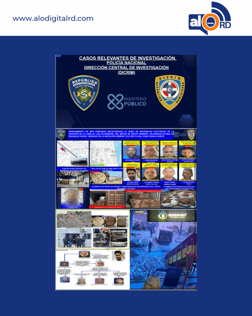 El 13 de junio, con una orden de allanamiento, agentes policiales y el Ministerio Público intervinieron en el local “Reciclaje M&M”, ubicado en la calle La Española, cerca de la avenida República de Colombia. Allí recuperaron todo el material justo cuando la empresa vinculada a uno de los implicados estaba a punto de embarcarlo. Este operativo refleja el compromiso de las autoridades en proteger las infraestructuras esenciales del país y frenar el delito organizado que afecta proyectos estratégicos como el Metro.