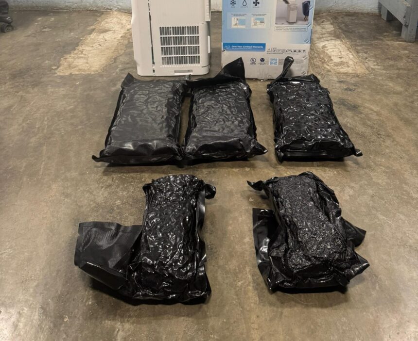 Incautan aire acondicionado portátil lleno de paquetes de marihuana