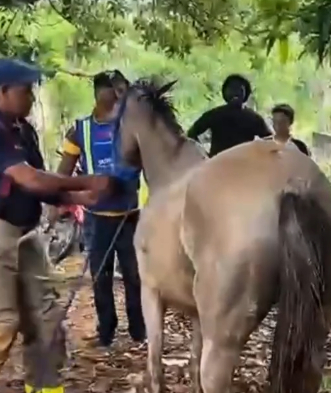 Un caballo quedó atrapado en una cisterna en la comunidad de Río San Juan, provincia María Trinidad Sánchez, generando alarma entre los vecinos que presenciaron la escena. El animal no podía salir por sí solo, lo que aumentó la preocupación de los presentes ante el peligro de asfixia o lesiones.