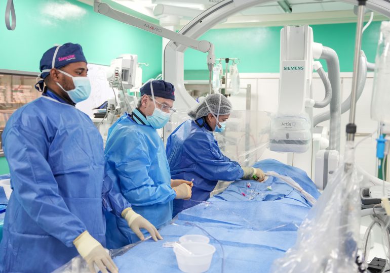 El equipo médico visitante estuvo liderado por el doctor Rodrigo Soto, cirujano cardiovascular, y el doctor Lee Benzon, cardiólogo intervencionista. Por parte del equipo local, las intervenciones estuvieron encabezadas por los doctores Iván Vides, gerente de Cirugía Cardiovascular, y Adabeyda Báez, coordinadora de Hemodinamia Pediátrica.