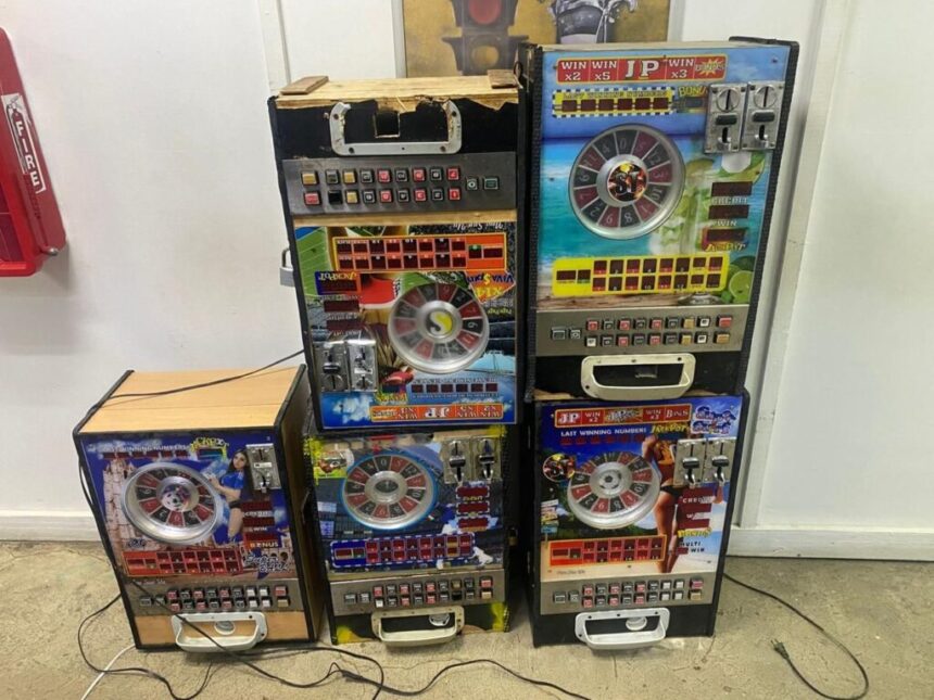 Asimismo, fueron decomisadas cinco máquinas tragamonedas en colmados de los sectores Parada 7, Pekín y La Joya.