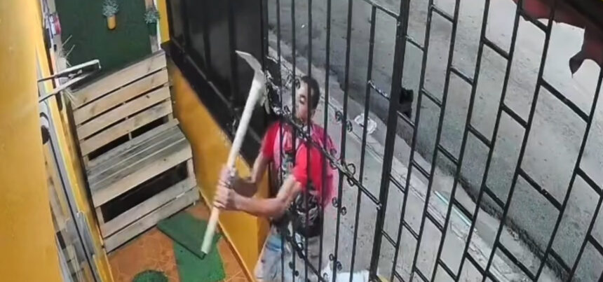 Un hombre fue captado en video mientras ingresaba a una dulcería en el sector Alma Rosa de Santo Domingo Este, usando un pico para romper el candado por tercera vez. En este último incidente, el delincuente se llevó cerca de 20 mil pesos en efectivo junto con varios productos del local.