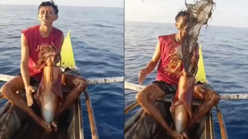En Filipinas, un pescador experimentó un instante inesperado al capturar un calamar gigante. Mientras mostraba orgulloso su pesca, el molusco liberó una densa nube de tinta que lo cubrió el rostro completamente. El momento quedó grabado en video y rápidamente se viralizó en redes sociales.