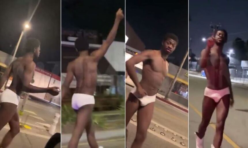El rapero Lil Nas X fue arrestado este jueves en Los Ángeles después de ser visto caminando casi desnudo por una avenida principal de la ciudad, solo vistiendo botas vaqueras blancas. Un video de TMZ mostró al cantante de “Old Town Road” interactuando con transeúntes mientras se movía por la calle semivacía, mencionando de forma enigmática una fiesta nocturna a la que parecía dirigirse.