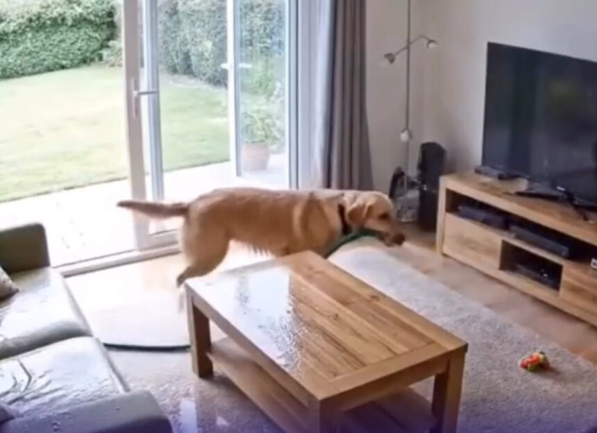 Los Golden Retriever son populares precisamente por su inteligencia y disposición a aprender, lo que los hace perfectos para entrenar y canalizar su energía con actividades adecuadas. Sin embargo, su curiosidad natural puede generar situaciones como la que se observa en este video, que encanta y divierte a quienes lo ven.