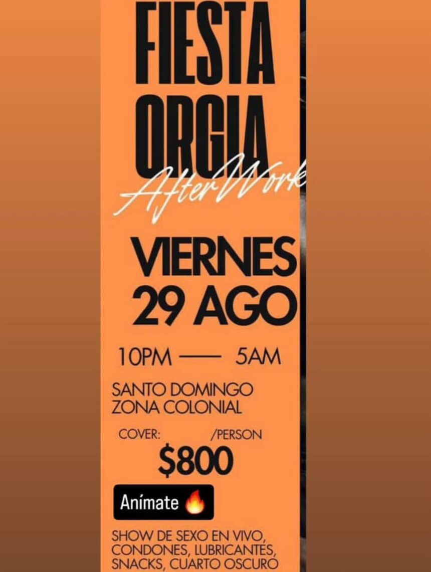 La Policía Nacional realizó un operativo el pasado 29 de agosto en un apartamento ubicado en la Zona Colonial, Distrito Nacional, donde sorprendió a 14 personas participando en una fiesta sexual clandestina, promocionada previamente en redes sociales. La intervención contó con una orden de allanamiento y fue ejecutada por varias divisiones policiales en coordinación con el Ministerio Público.