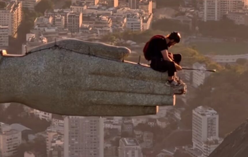 Hombre se sube al Cristo Redentor y salta desde la mano de la estatua en Brasil