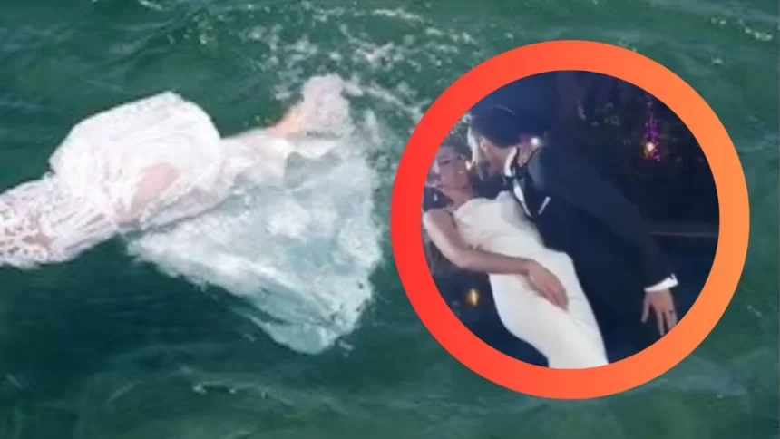 El incidente ocurrió el día de la boda, cuando el hombre decidió sorprender a su esposa dejándola caer en la piscina. A pesar de que ella intentó reírse con todas sus fuerzas, la situación rápidamente se tornó incómoda. La grabación del momento se volvió viral, y las reacciones no se hicieron esperar.