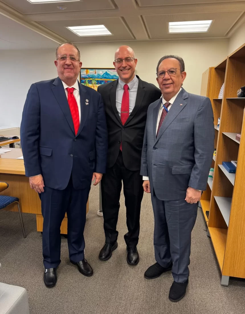 El gobernador del Banco Central de la República Dominicana, Héctor Valdez Albizu, y el ministro de Hacienda y Economía (MHE), Magín Díaz, sostuvieron un encuentro bilateral con el señor André Roncaglia, director ejecutivo del Fondo Monetario Internacional (FMI) por Brasil y presidente de la constituyente de países a la cual pertenece la República Dominicana. Dicha reunión tuvo lugar en el marco del inicio de las Reuniones Anuales del FMI y del Banco Mundial de 2025.