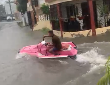 Aló Digital > Blog > Clima > Ingenio dominicano flota en calles inundadas por Melissa