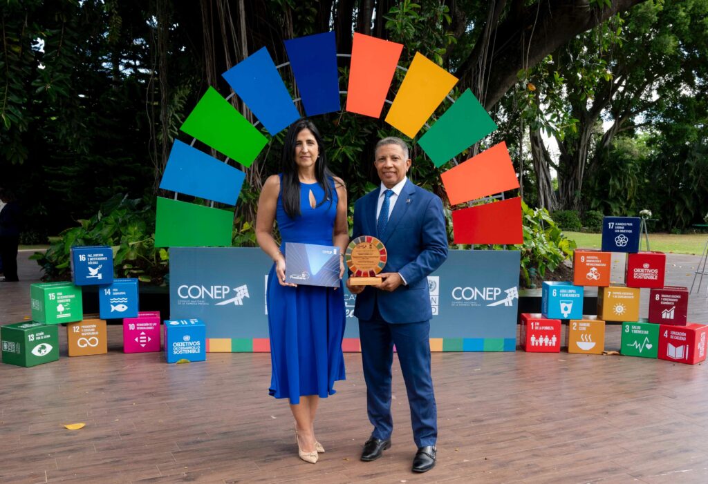 El galardón fue recibido por el director senior de Pymes de Banreservas, Juan Carlos García; y la directora de Sostenibilidad y Responsabilidad Social de la institución bancaria, Raquel Giraldez.