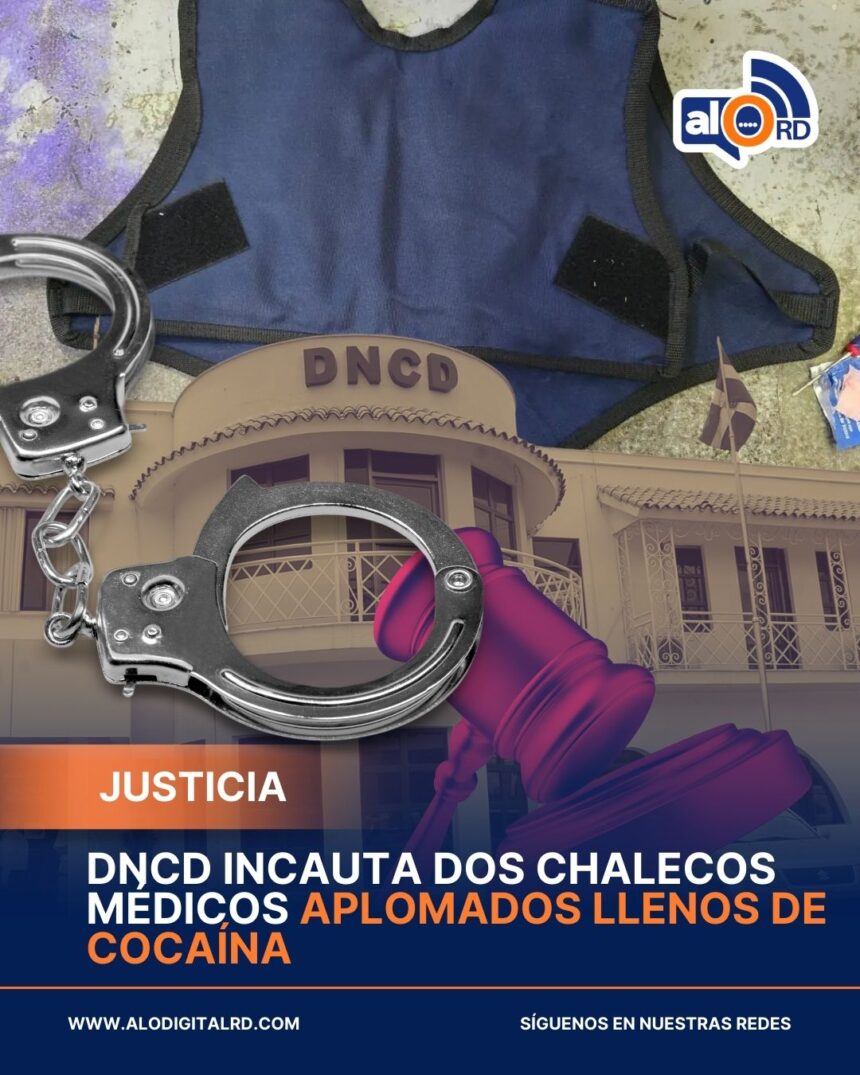 SANTO DOMINGO.– Agentes de la Dirección Nacional de Control de Drogas (DNCD), junto a miembros del Ministerio Público, incautaron dos chalecos médicos aplomados que contenían cocaína, durante un operativo de inspección realizado en el Instituto Postal Dominicano (Inposdom).