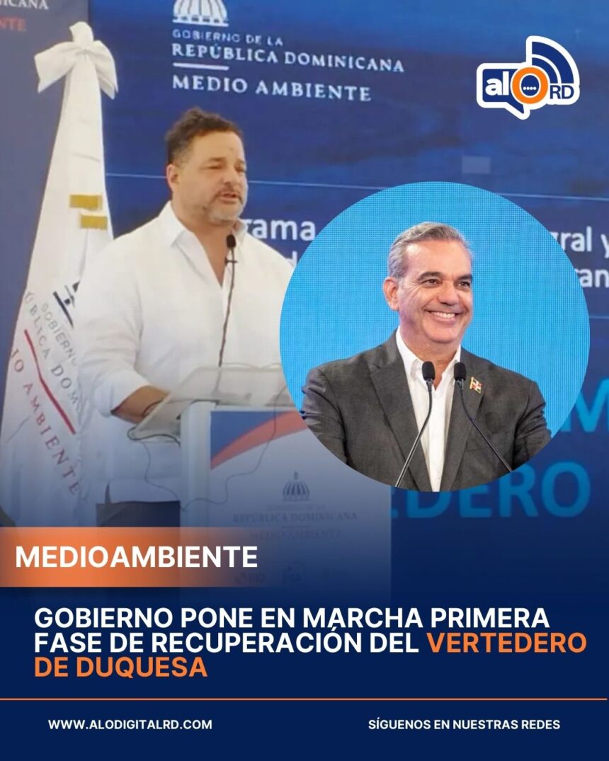 Santo Domingo.— El Gobierno dejó iniciados este martes los trabajos de la primera fase de transformación del vertedero de Duquesa, como parte del Programa de Gestión Integral y Sostenible de Residuos Sólidos en el Gran Santo Domingo, con una inversión global estimada en US$110 millones.
