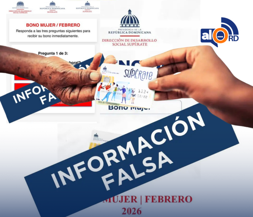 El programa Supérate advierte sobre mensajes falsos en redes sociales que promocionan un supuesto “Bono Mujer” de RD$2,800 para febrero de 2026. Estos anuncios incluyen enlaces fraudulentos para robar datos personales, como cédulas, números de cuentas bancarias o contraseñas.