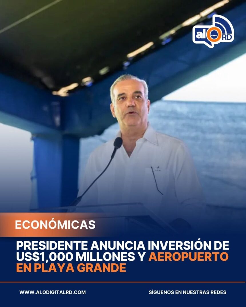 Río San Juan. – El presidente Luis Abinader y ejecutivos del proyecto Playa Grande Golf & Ocean Club anunciaron una inversión estimada en mil millones de dólares, que incluye el desarrollo del Aeropuerto Internacional de Playa Grande, una terminal aérea privada que buscará fortalecer el acceso a la costa norte de la República Dominicana.