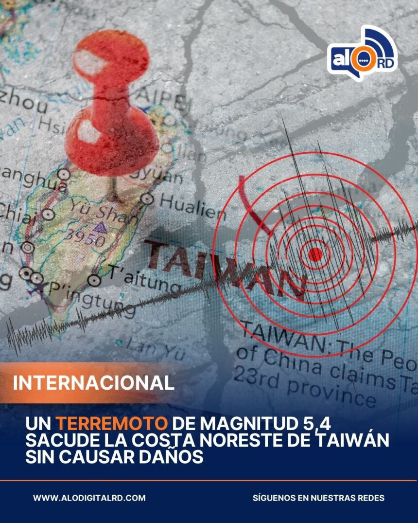 Un terremoto de magnitud 5.4 se registró este domingo frente a la costa noreste de Taiwán sin que hasta el momento se reporten víctimas ni daños de consideración. Según la Agencia Meteorológica Central de la isla, el sismo ocurrió a las 16:14 hora local en aguas cercanas al territorio, con epicentro ubicado a 49.6 kilómetros al sur-sureste del condado de Yilan y a una profundidad aproximada de 23.2 kilómetros. El movimiento telúrico también se sintió en varias ciudades y regiones del norte y centro del país, incluyendo Taipéi, Nuevo Taipéi, Taoyuan, Taichung y Nantou.