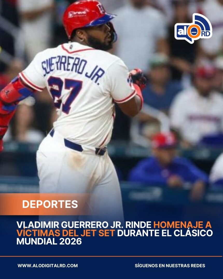 El pelotero dominicano Vladimir Guerrero Jr. realizó un homenaje simbólico a las víctimas de la tragedia ocurrida en el centro nocturno Jet Set durante su participación en el Clásico Mundial de Béisbol 2026. El gesto consistió en llevar un arete con la bandera de República Dominicana acompañado del número de fallecidos, en memoria de las 236 personas que perdieron la vida tras el colapso del techo del establecimiento el 8 de abril de 2025.