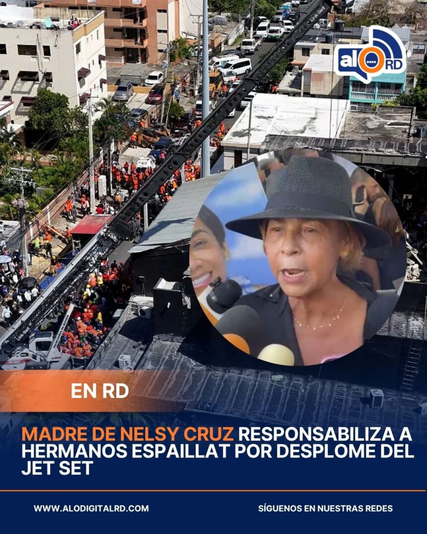 Dominga Martínez, madre de Nelsy Cruz, exgobernadora de Montecristi y una de las 236 víctimas del desplome de la discoteca Jet Set ocurrido el 8 de abril de 2025, atribuyó la tragedia a la negligencia de los hermanos Antonio y Maribel Espaillat. La señora Martínez instó al Poder Judicial a actuar conforme a la ley y aseguró que, de no hacerlo, confía en la justicia divina, recordando el profundo impacto de este suceso en la memoria colectiva de los dominicanos y la seguridad de las infraestructuras del país.