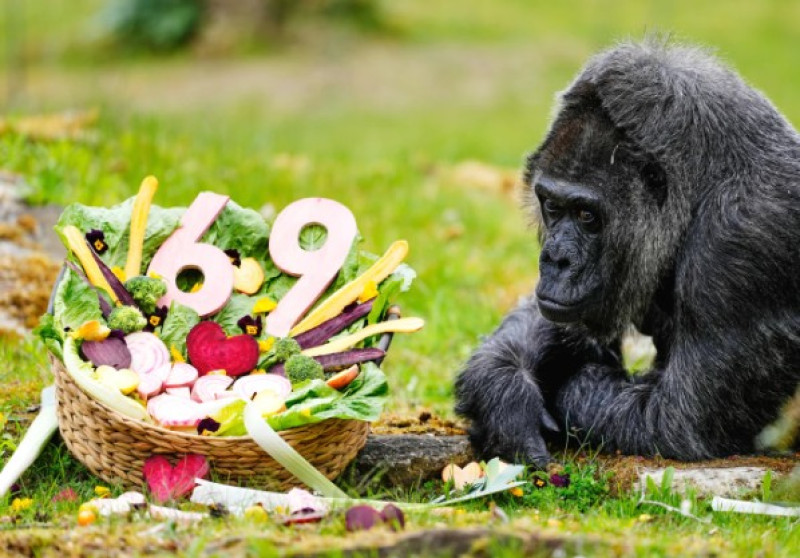 Fatou, una gorila de llanura occidental que vive en el Zoológico de Berlín, celebró su cumpleaños número 69 con un festín de alimentos naturales como tomates cherry, remolacha, puerros y lechuga, según informaron autoridades del recinto. El zoológico explicó que no se le ofreció pastel debido a los riesgos del azúcar en primates de edad avanzada.