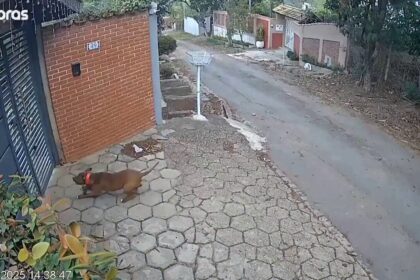 Pitbull arrastra a cachorra fuera de casa en Itupeva, São Paulo