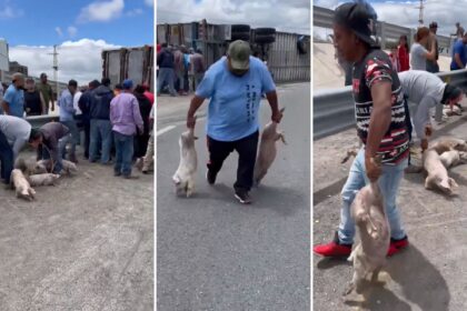 Un tráiler que transportaba cerdos volcó en la carretera a Matehuala, en…