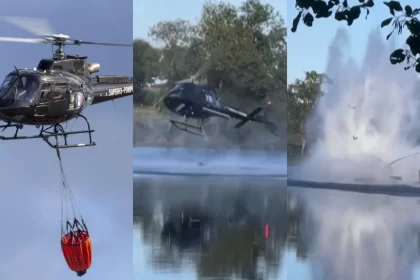 Un helicóptero de bomberos perdió el control y cayó sobre un estanque…
