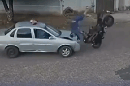 Hombre sobrevive a choque frontal en moto sin un rasguño