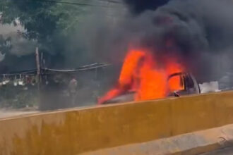 Auto se quema en Autopista Duarte sin ayuda inmediata