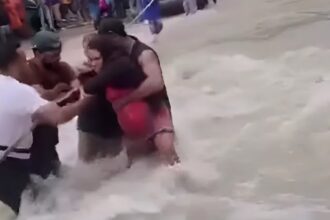 Una mujer que se volvió viral por cruzar un río mientras estaba…