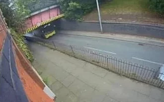 Un autobús de dos pisos chocó contra un puente bajo en Manchester,…